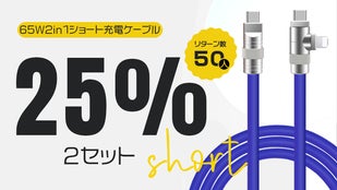 長さわずか25cmで、モバイルバッテリーやデスクトップ充電に実用的で、長いケーブルの絡まりもなく、シンプルできれいに。
