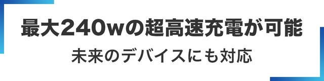 最大240wの優れた給電力により圧倒的な速さで充電が可能です。