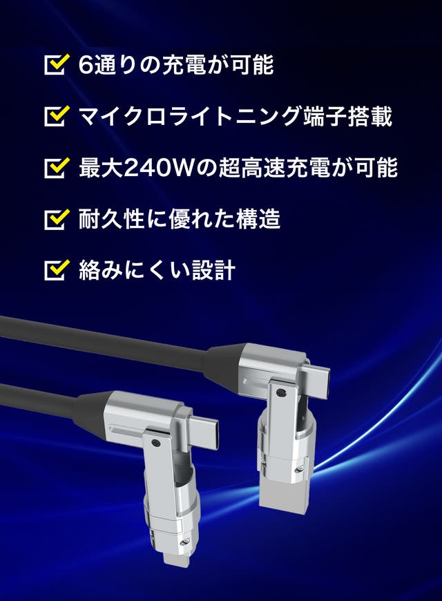 - 240W急速充電!!未来の超消耗型電子機器にも対応可能。未来を先取りできる夢のケーブル。