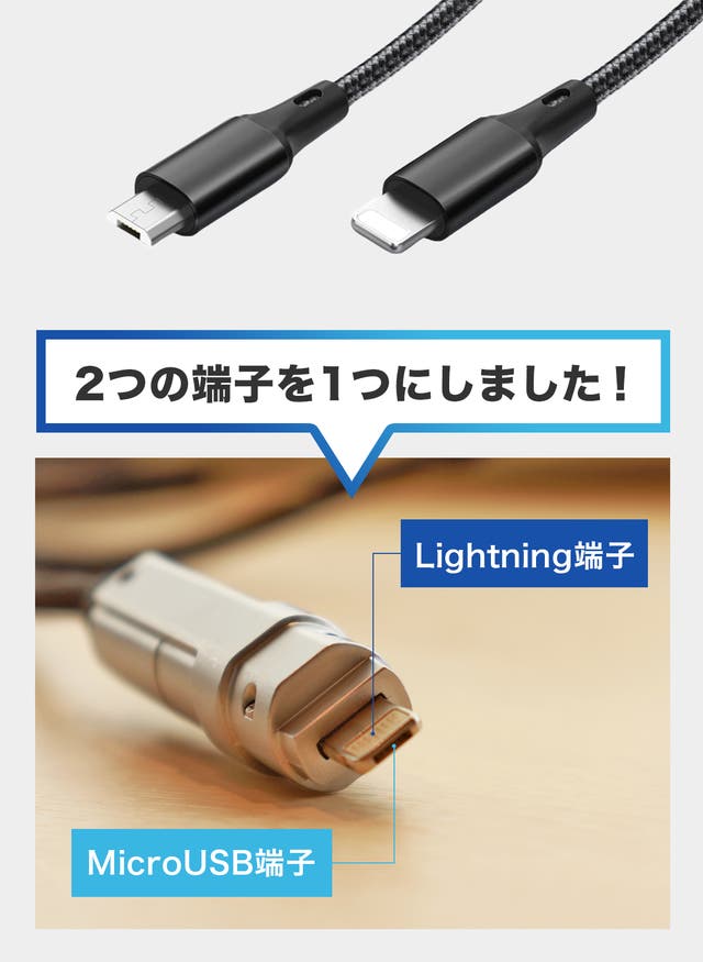 - 「マイクロライトニング端子」搭載!差し替え不要で、2つの端子に対応!!