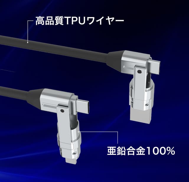 ケーブル部分には高品質TPUワイヤーを採用しています。折ったり曲げたりしても、断線しづらい仕様となっています。