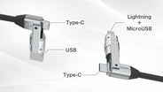 LightningとMicroUSBが合体した端子を搭載した6in1ケーブルの開発に成功しました。
