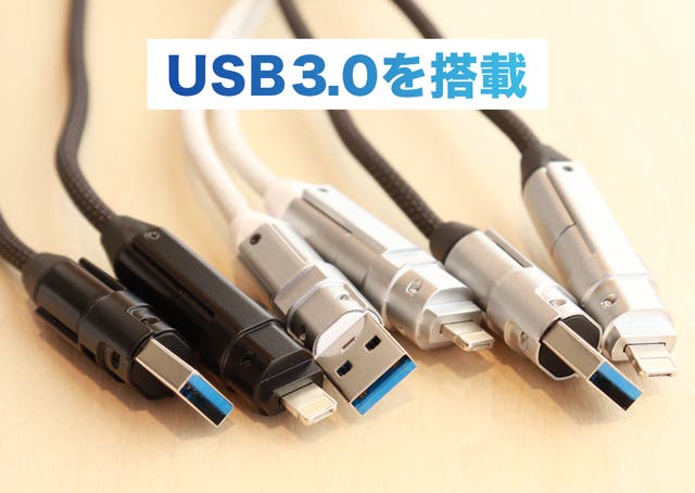 - USB3.0の6in1充電ケーブル。どんなデバイスでもこれ一本で充電が可能!!