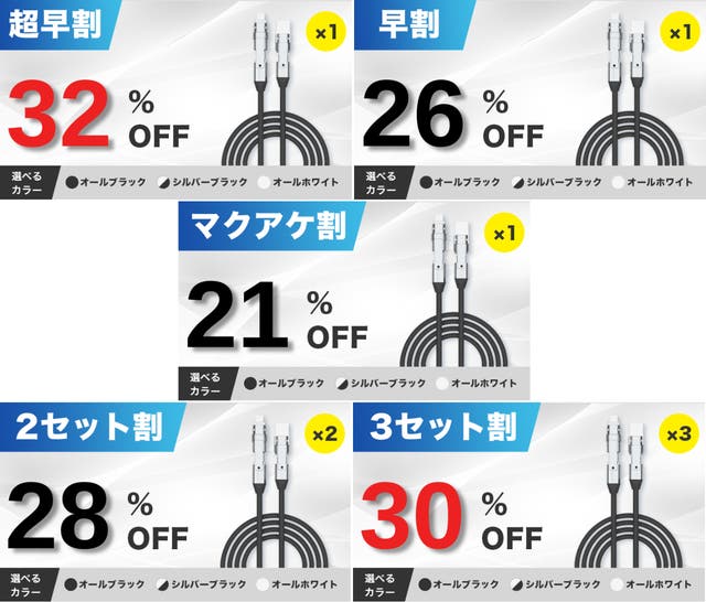 ○【2セット割28%OFF】マイクロライトニング6in1ケーブル