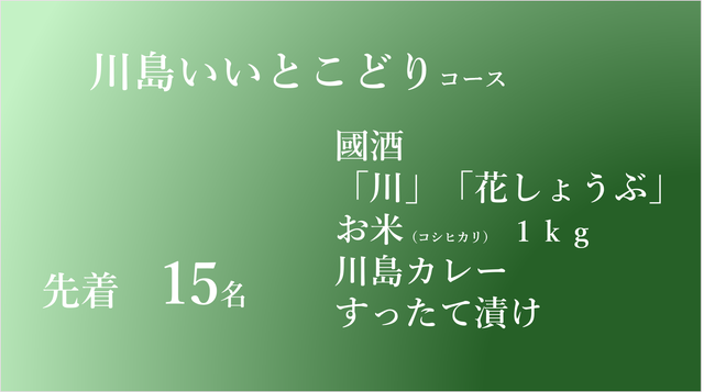 「川島いいとこどりコース」には二種類の日本酒と川島の特産品を詰め込みました。
