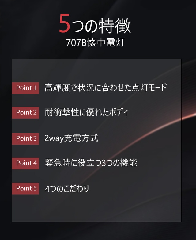 災害時に必要不可欠な機能を備えつつ、どんな悪条件下でも優れた性能を発揮し、シンプルで頑丈な707B懐中電灯をおすすめします。