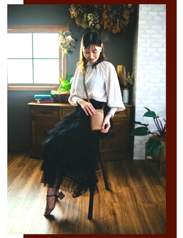 - ローズゴールド色の繊細な輝きのナッパレザーを使用し、装いにジュエリーのようなきらめきをプラス。