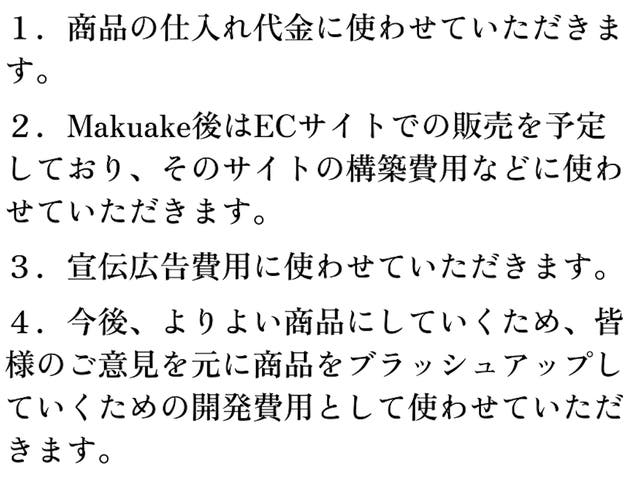※皆様の応援購入により量産効率が向上した場合、正規販売価格が販売予定価格より下がる可能性もございます。