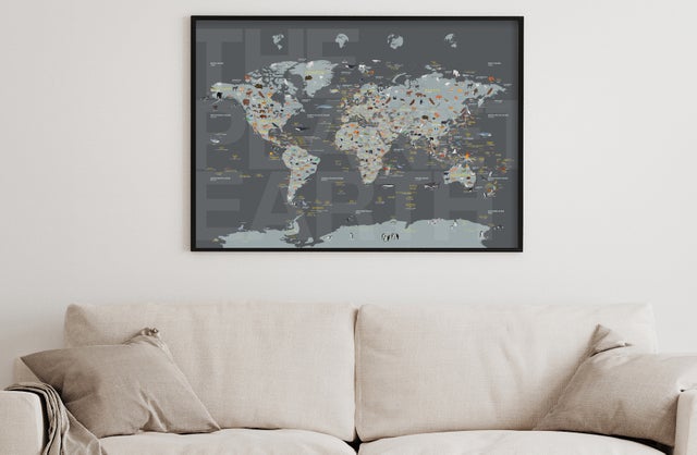 詳細な地図としての役割に加えて、大胆なグラフィックで「地球」を感じることができる、インテリアのためのデザインポスターとしてもおたのしみください。