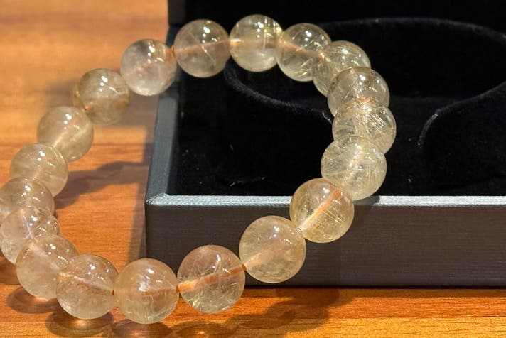 - ひとつとして同じ石はない、高品質ルチルクォーツ(金針線水晶)を熟練念珠職人がブレスレットに