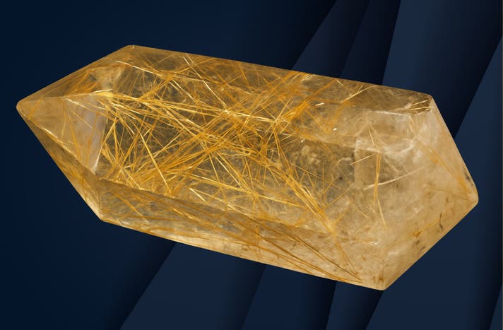 黄金に輝くルチルが、まるで幸運を呼び込む光の矢のようにあなたを導きます。