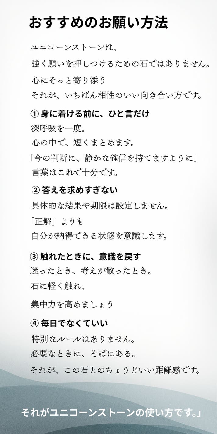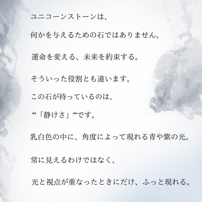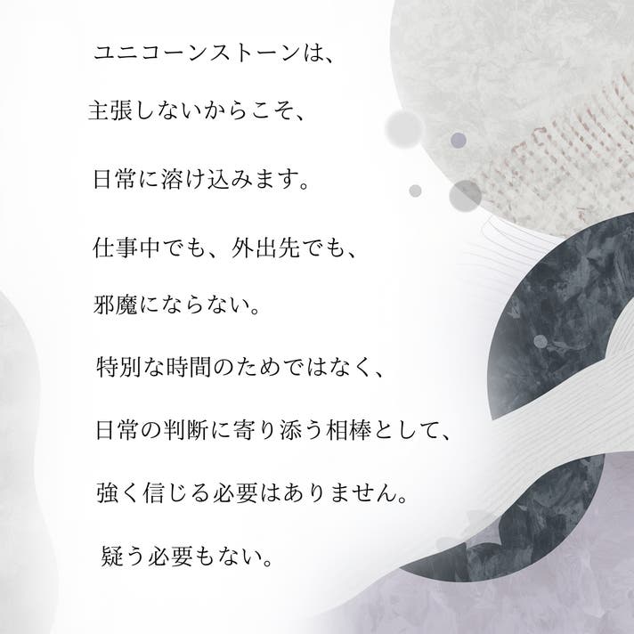 ユニコーンストーンは、強い意味や考え方を押しつける石ではありません。