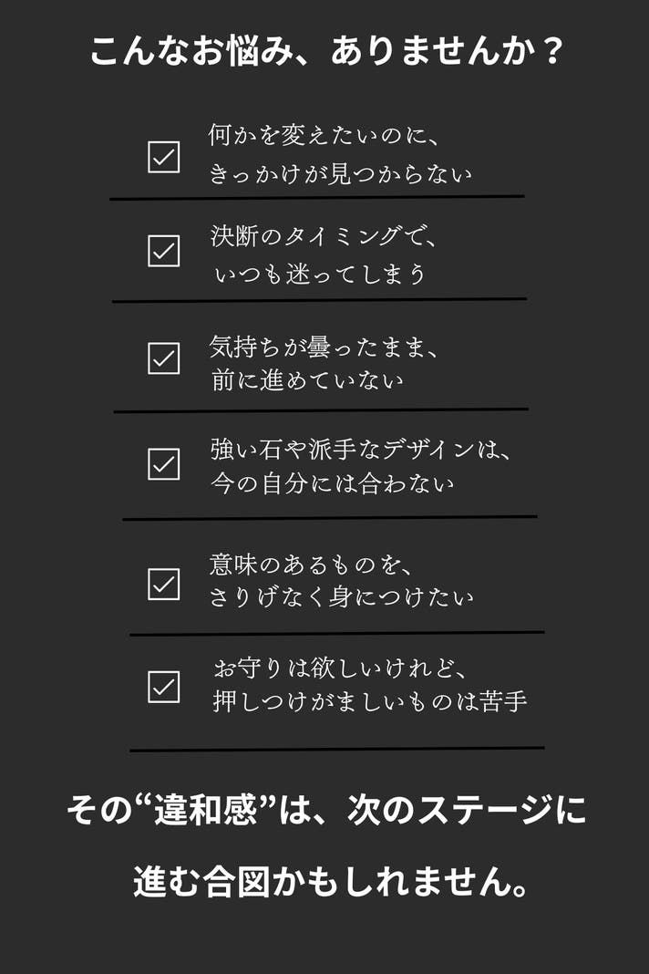 主張は強くないけれど、光の加減で確かに存在を感じさせる――その佇まいに、私たちは「今」という時間を重ねました。大きな変化を起こすための石ではありません。