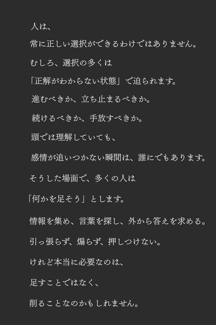 日々の選択や、重要な局面において、感情ではなく、自分自身の軸で進むための