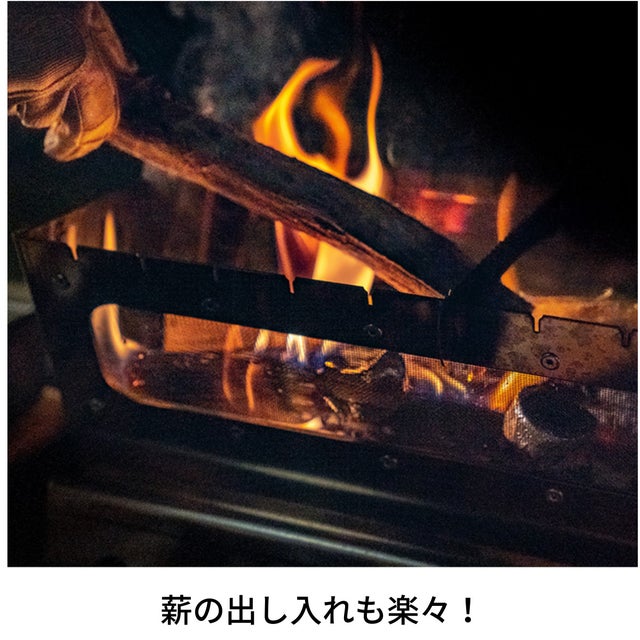 補充用の薪は脚元のスペースに保管できて、デッドスペースも有効活用!