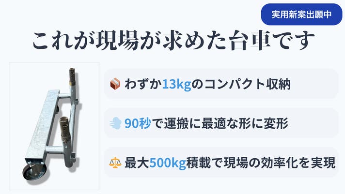 建設業20年の経験から生まれた、本当に使える台車をお届けします。