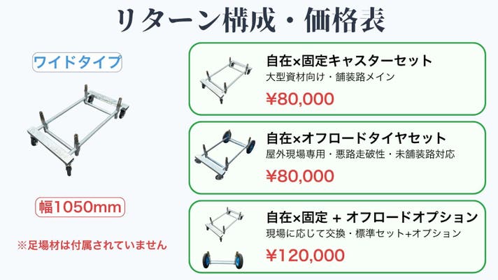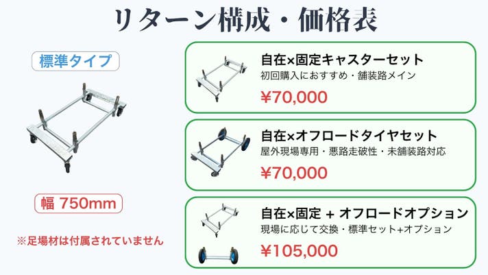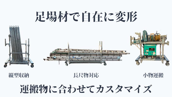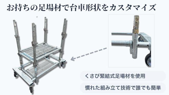 - お持ちの足場資材を使用して台車形状をカスタマイズできます!