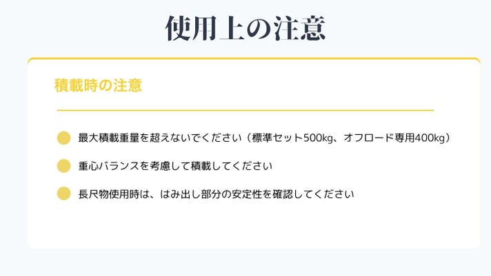 A. 通常使用時の最大積載重量は500kgです。500kg以下でのご使用をお願いいたします。