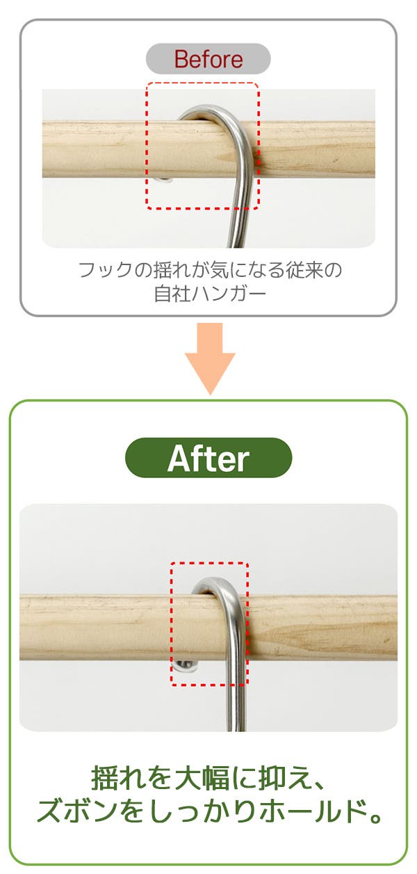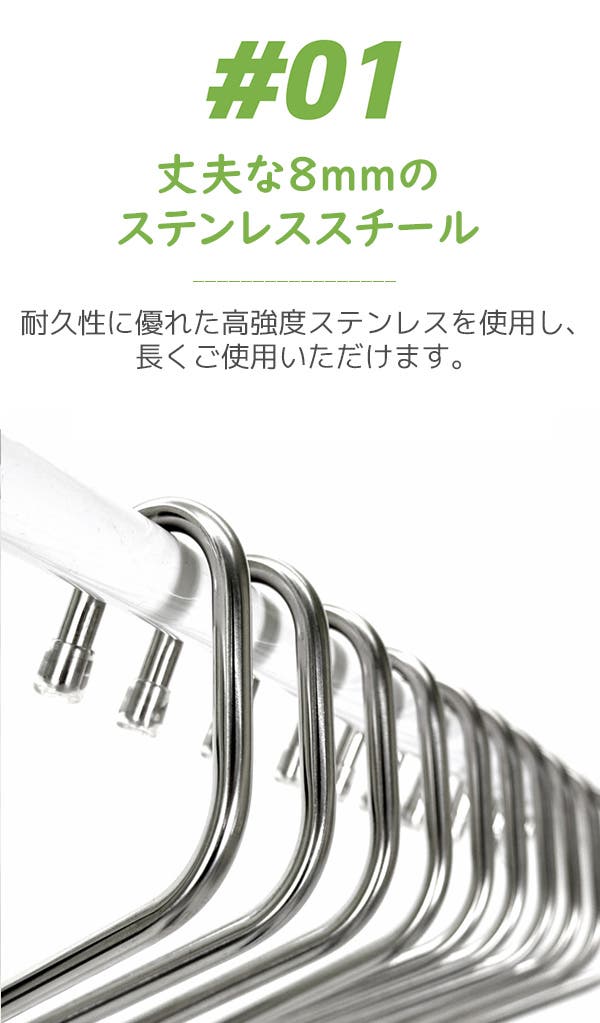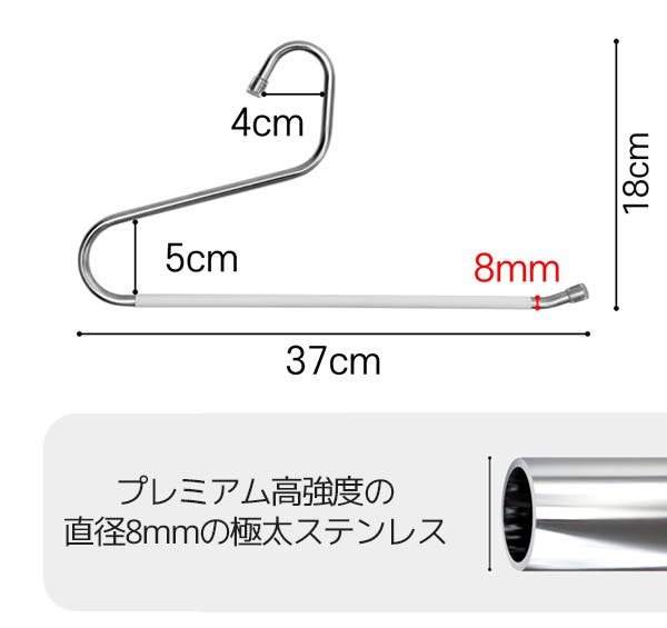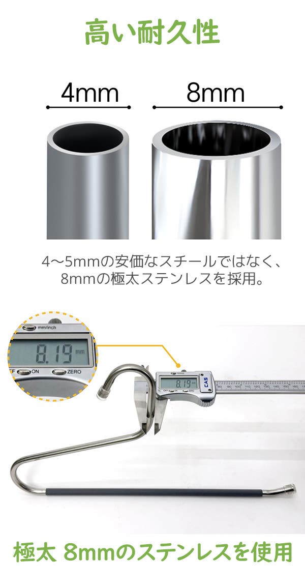 - 極太8mmステンレス製で、重たいズボンもしっかり支える抜群の耐久性を誇ります。