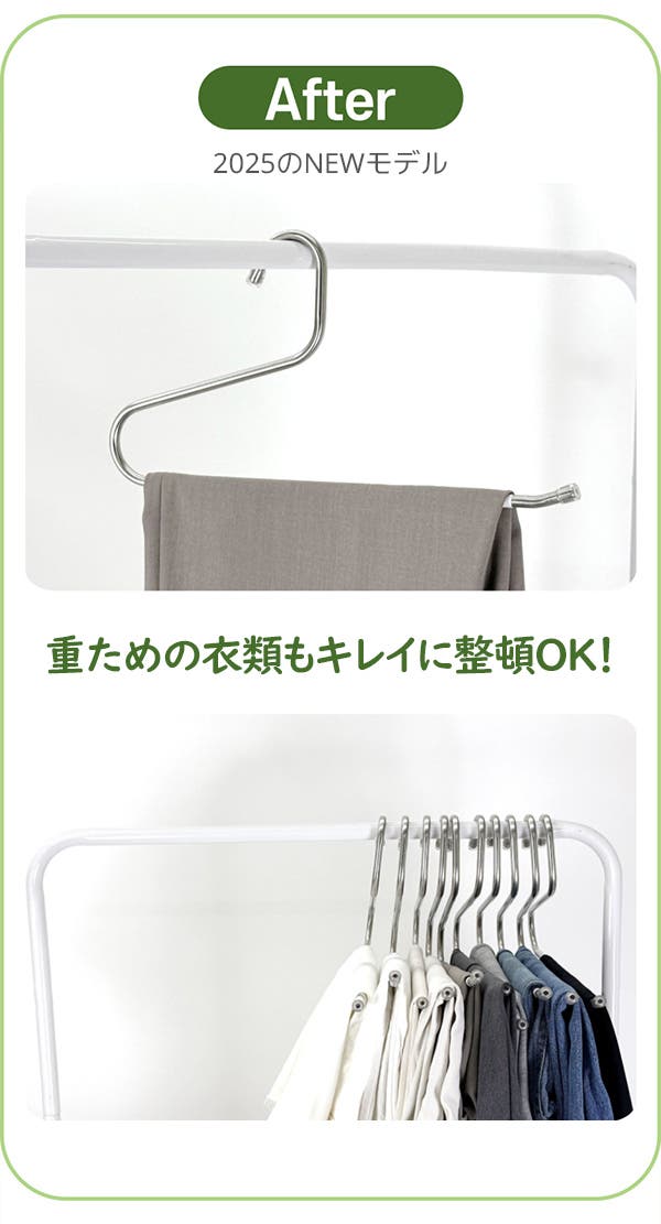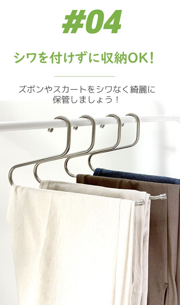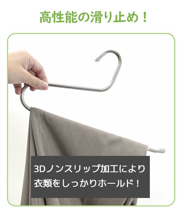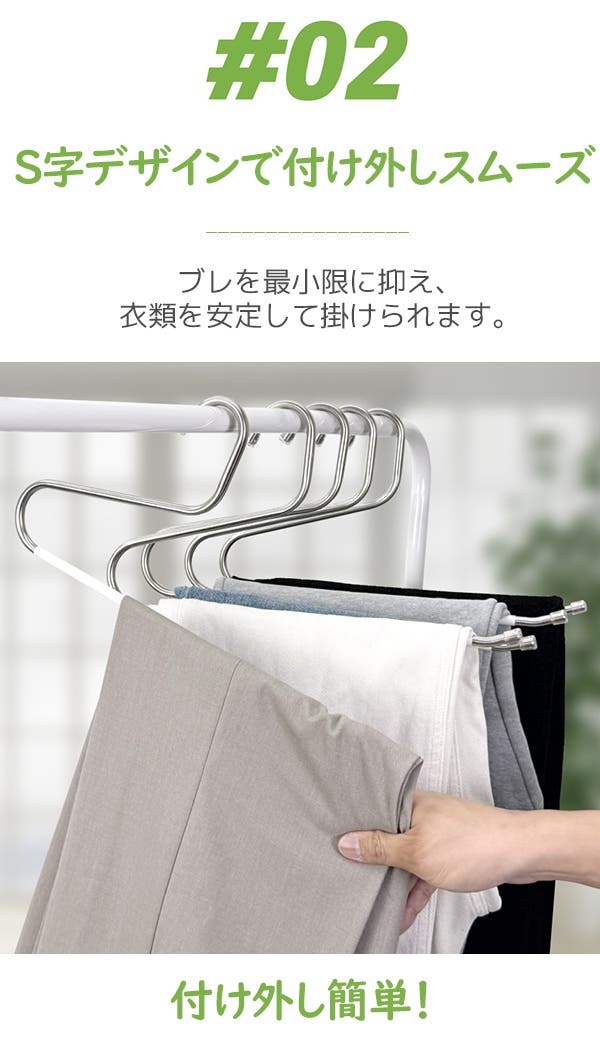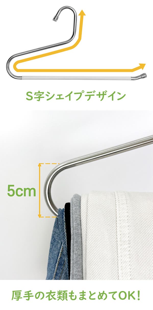 - S字デザインで掛け外ししやすく、衣類の整理整頓がもっと楽になります。