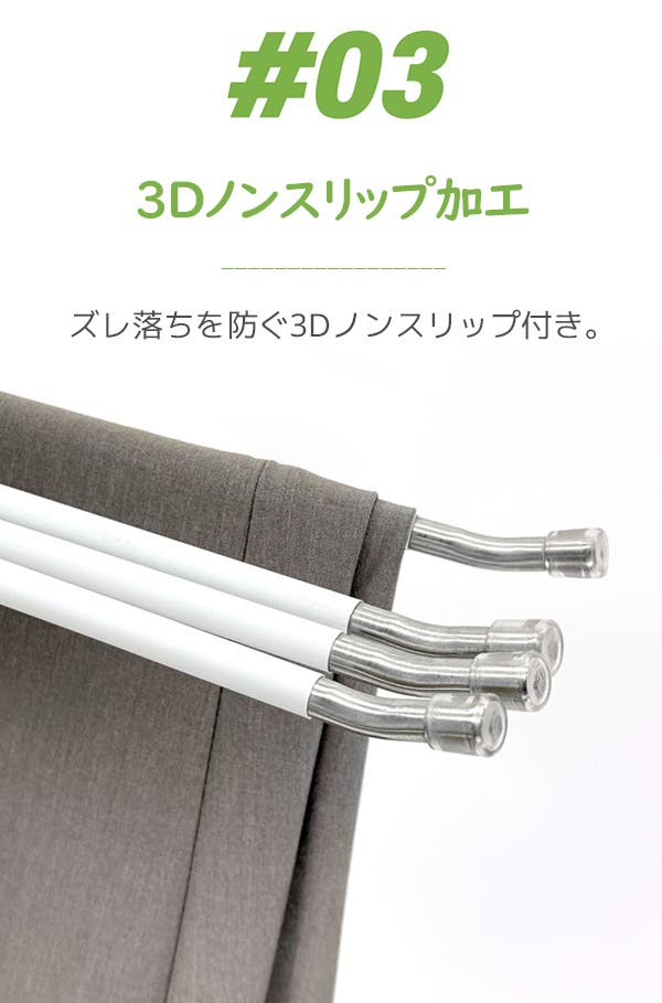 3Dノンスリップ加工により衣類をしっかりホールドし、ずり落ちずに安定した状態で衣類を保管することができます。