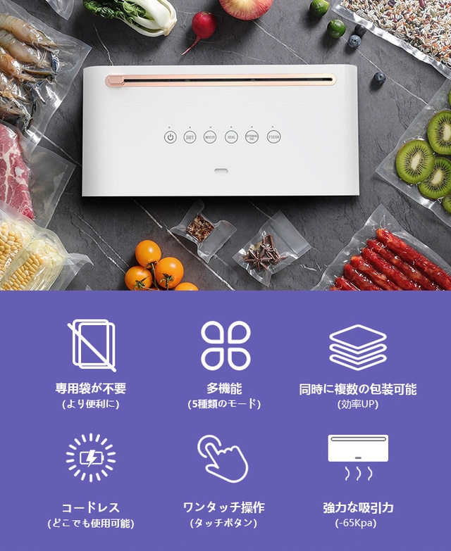 今回、皆様にお勧めするコードレス真空パック機は、そのような悩みを全て簡単に解決してくれます。食材を真空パックし、袋を密閉するだけではなく、排気チューブを使って衣類を真空状態にすることもできます。この製品を使用して気に入ってくださったら、ぜひ私たちの製品を応援してください。