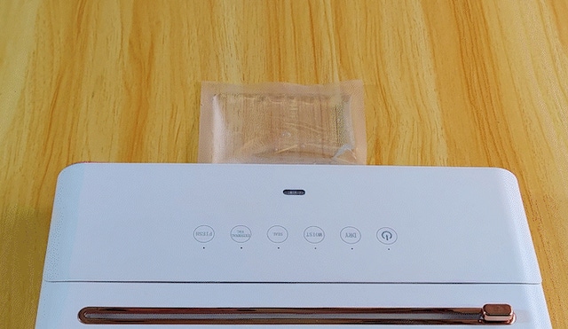 909Dにはロールカッターが内蔵されており、袋を開封する時は、左または右に軽くスライドするだけでカットできます。