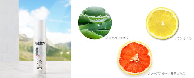 アロエベラエキス、グレープフルーツ種子エキス、レモンオイル等の天然成分を使い、エタノール配合により菌を99.9%除去※する、身近なものに使える除菌スプレーです。