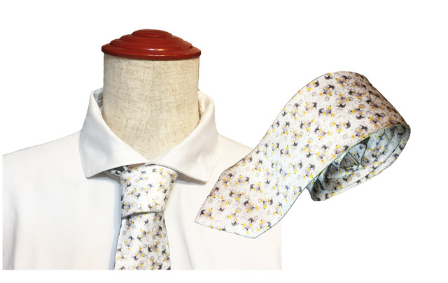 注意2:ネクタイ全体に一回でプリントを施すため、数ミリの違いというのが発生してしまうためです。特に縦に並ぶようなデザインでは、ネクタイ上のプリントの左右の隅においてズレが目立つ可能性があります。デザインについて疑問があればお問い合わせください。