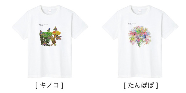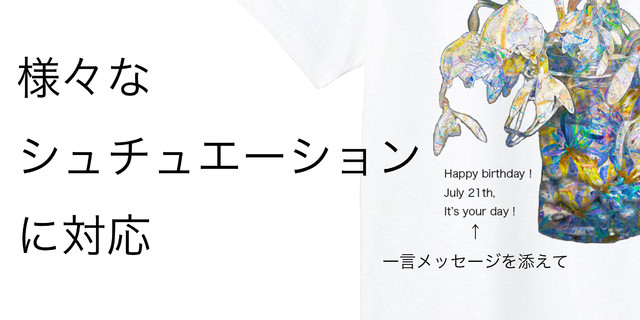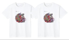 花を一枚一枚使用してデザインした全8種類のオリジナルTシャツ。女性にも男性にも着やすいデザインを心がけ、ギフトとしても普段着としても使用できるTシャツになっています。