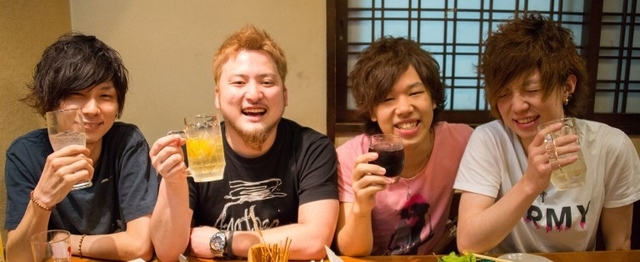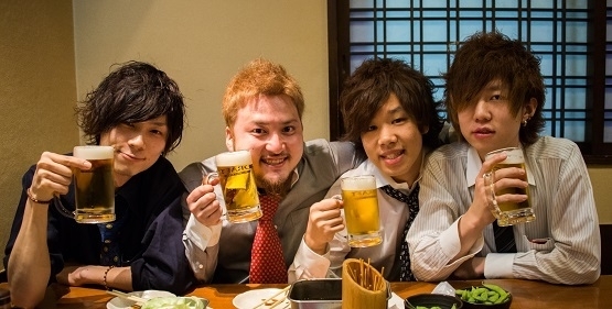 (左からBa,ツヨシ、Vo,コージロー、Dr,ケイ、AGt,ケースケ)