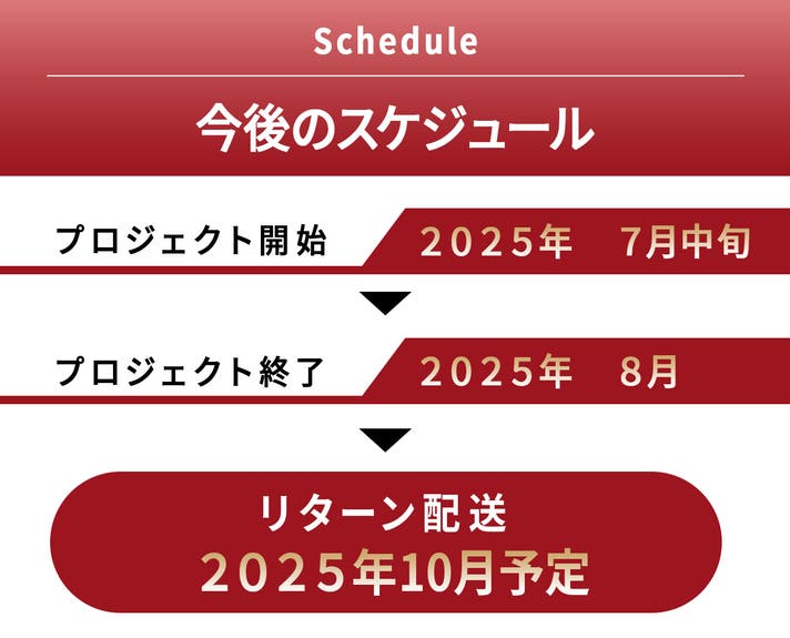 このプロジェクトはAll in型です。目標金額の達成に関わらず、プロジェクト終了日の2025年08月30日までに支払いを完了した時点で購入が成立します。