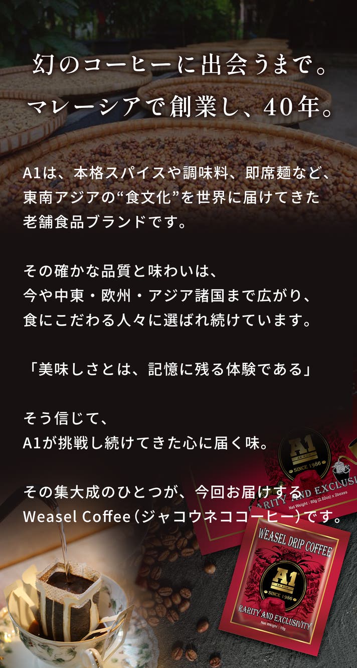 - 【創業40年】マレーシア老舗食品が選び抜いた、本物のWeasel Coffeeが日本上陸