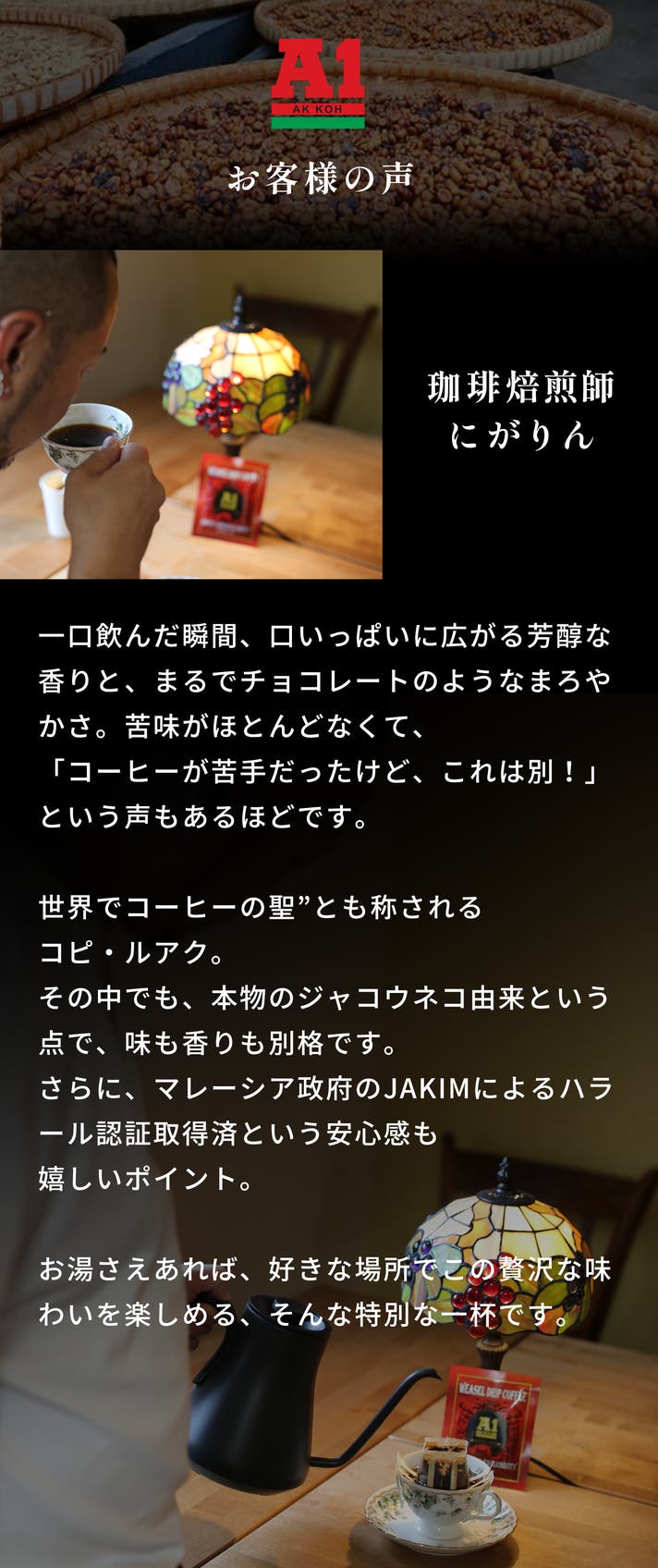 - 【ジャコウネコ豆5%使用】幻のコーヒーを手軽に味わう、特別なブレンド