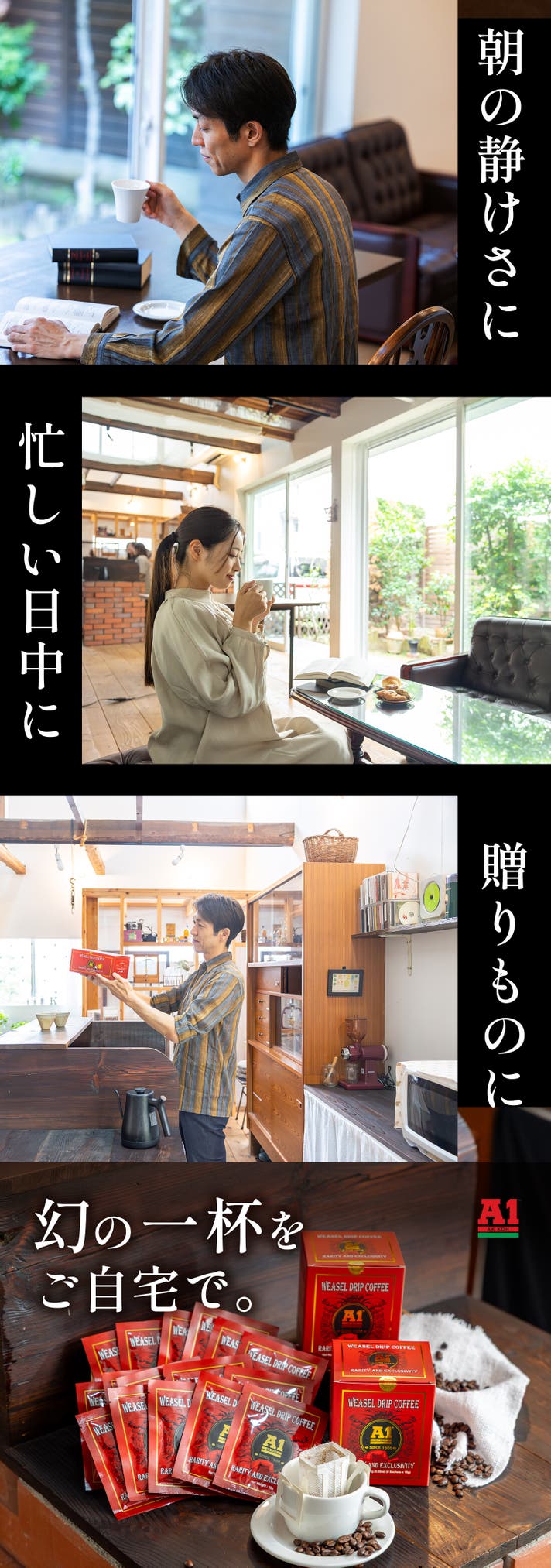 商品名:A1 WEASEL DRIP COFFEE 入り数:16パック(8P x 2箱入り)