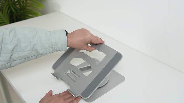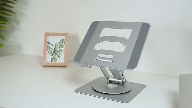 ノートパソコンスタンドの台座は360°回転でき、回転抵抗が絶妙で、軽く押すだけで回転角度がつきます。動かさずに画面を共有できるので、対面での打ち合わせやプレゼンの際にも、作業を効率化できます。摩擦に強くて耐用性が優れ、自由に調整可能し、安定性にも心配ないです。長い時間に使用しても緩む心配がありません。