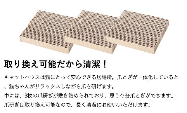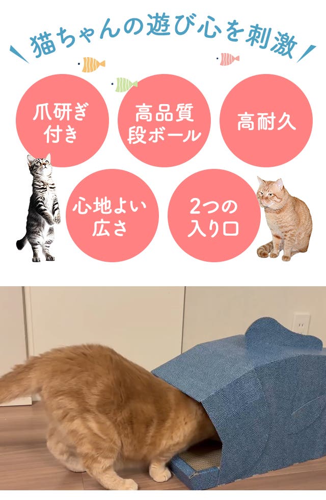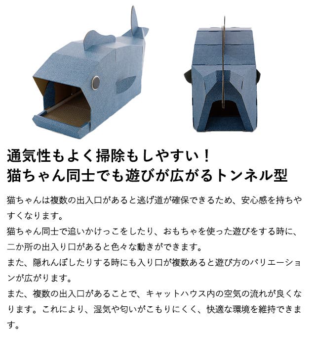 - おしりの方からも通り抜けられる貫通型のキャットハウスで、写真動画映えも間違いなし!