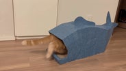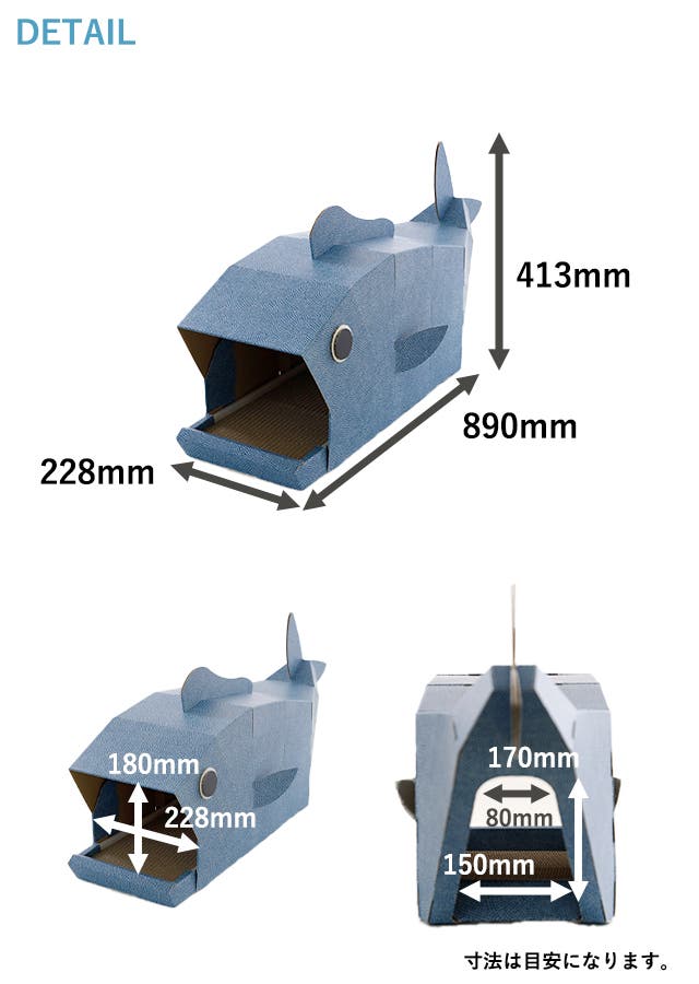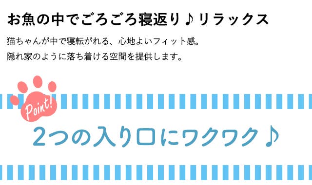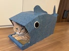 - おさかなに丸飲みされちゃうように中に入ると、爪とぎもできて落ち着ける広さ