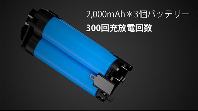 内蔵されているのは2000mAh*3の高品質リチウムイオンバッテリー。約300回充放電を繰り返した後も、バッテリー性能を80%保ちます。
