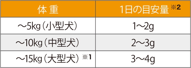 ※1 15kg以上の場合は5kgにつき1gずつ追加してください。