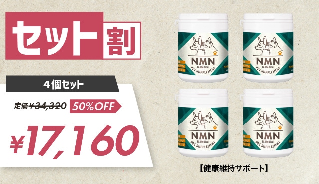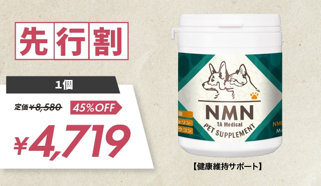 近年エイジングケア※で話題になっている「NMN」という成分は、ペットにとってもいい成分だと考えられます。 ※年齢に応じた栄養を摂取すること