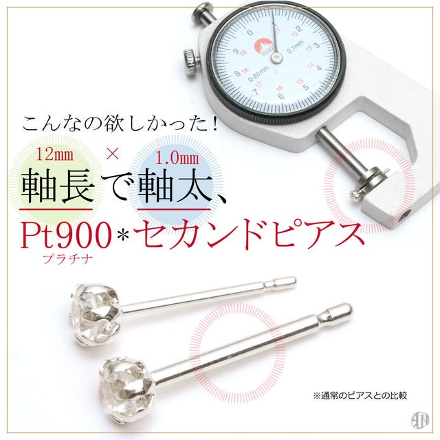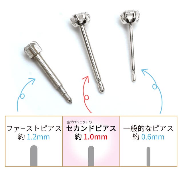 - ファーストピアスに近い『プラチナの軸太1mmセカンドピアス』を開発しました。