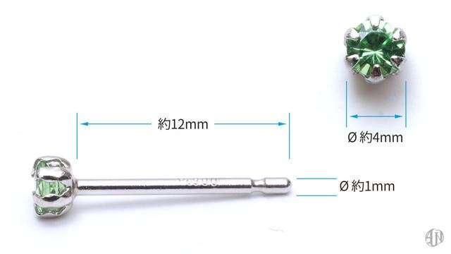ファーストピアスの軸の太さは1.2mm、一般的なピアスは0.6mm。軸の太さに約2倍の差があります。