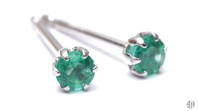 【早割】エメラルド プラチナ(Pt900)セカンドピアス 軸太1mm