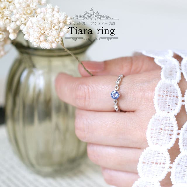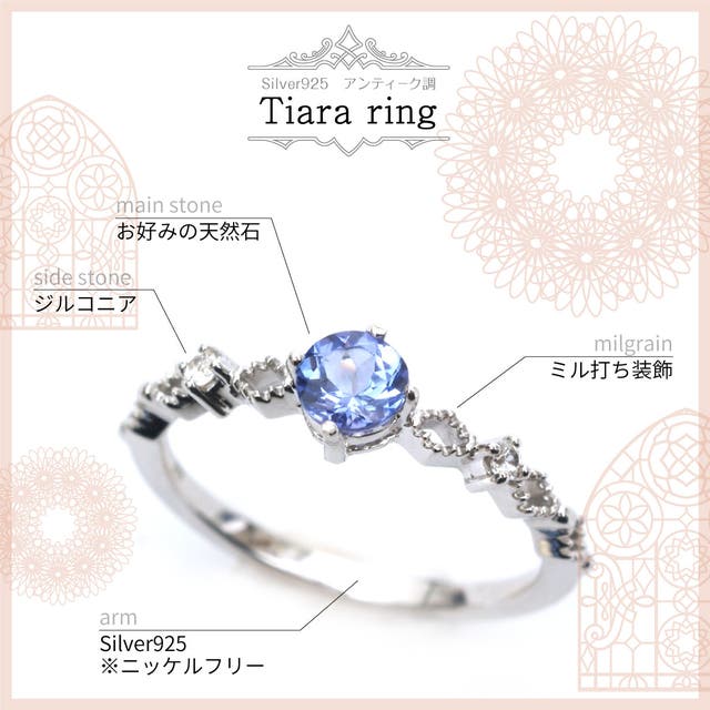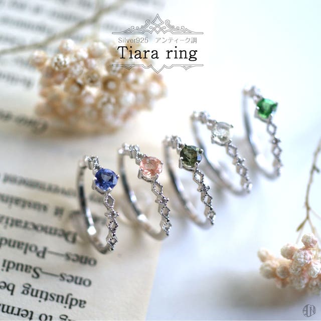 【早割】2種類の選べる天然石 シルバー(sv925)ティアラリング