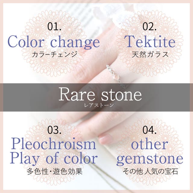レアストーンとは珍しい色合いや、産出量がとても少ない希少価値のある宝石などの総称。