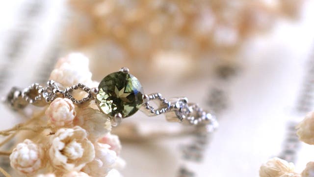 まるで魔法のように光源によって宝石の色合いが変わる変色効果