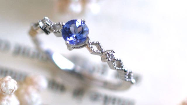 アフリカ・タンザニアの夕暮れから夜に変わる瞬間の空を閉じ込めたような、1色では表現できない様々な色彩が混ざり合うタンザナイトブルー。