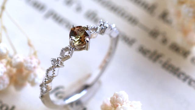 まだあまり知られていない宝石ですが、赤や茶色、黄土色、緑など光の入り方で色が混ざり合うアンティーク調の大人の色味は、素晴らしい多色性と輝きを持つ希少な天然石です。