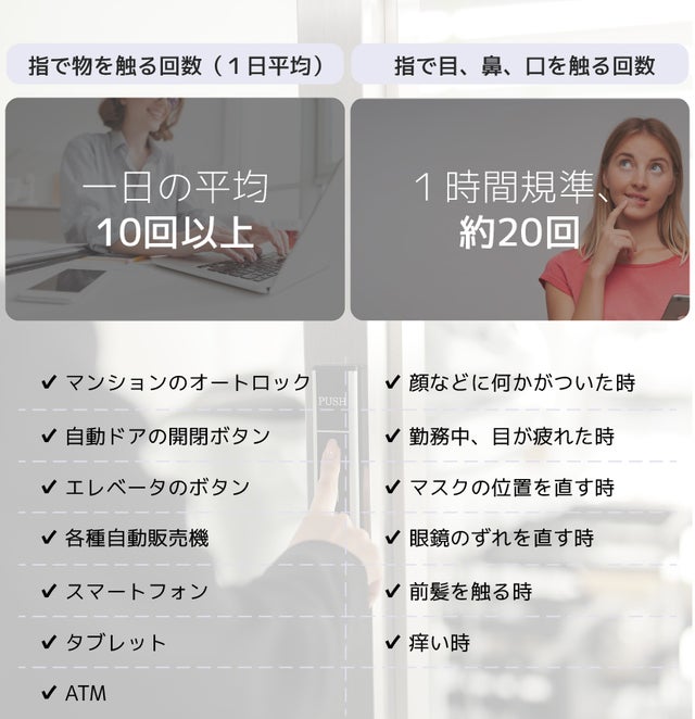 マンションのオートロック、スマートフォン、タブレット、ATM、自動ドアの開閉ボタン、自動販売機、エレベーターのボタン…